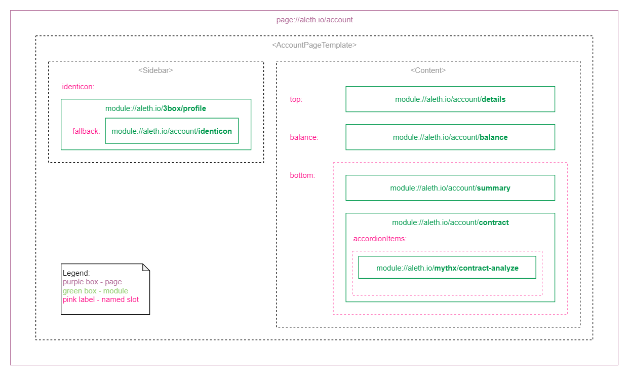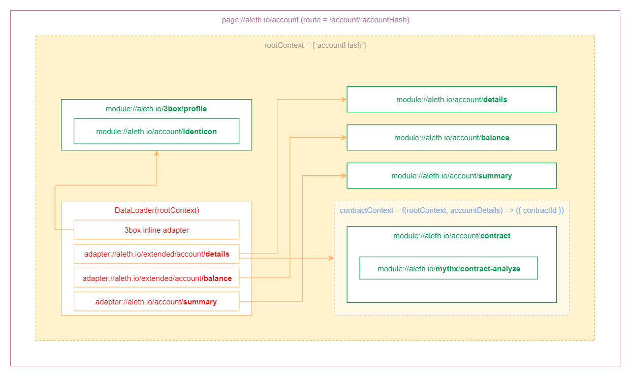 The following diagram shows how the above elements can be combined to form a complete page, the Alethio Explorer account page.