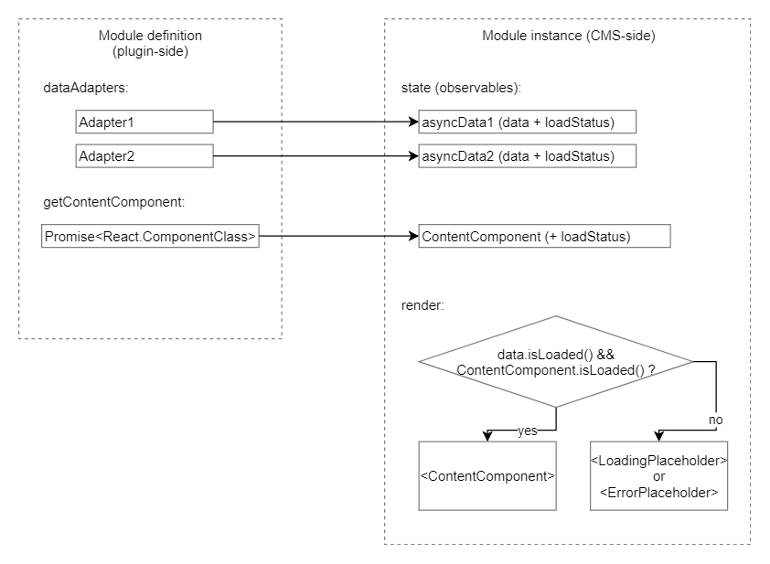 - The CMS will re-render and update the module content every time the data/component loading state changes