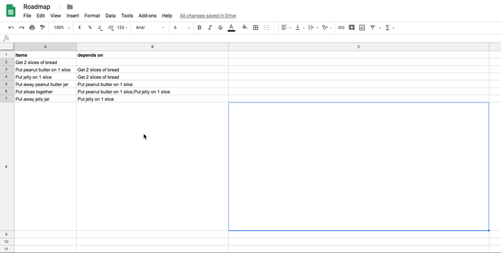 We've built a roadmap on google spreadsheet but now we can't find a way to visualize the whole dependency graph 😥